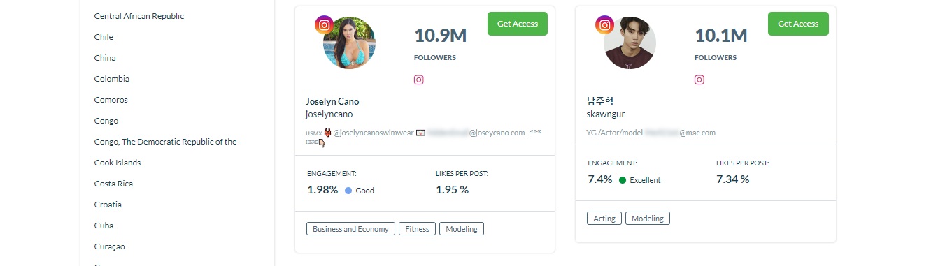Onalytica has curated lists of influencers for popular categories, such as Fashion, Food, and Lifestyle. Everyone on these lists has been vetted (by a human) to ensure they are a good fit for the list. Searchers can also search for influencers by platform, demographics, or content. You can upload your content to Onalytica, and their software will do its best to find influencers who have written material in a similar voice to your own.